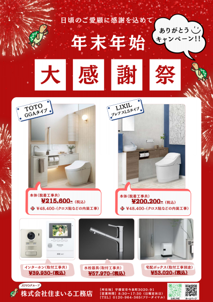 ~~日頃のご愛顧に感謝を込めて~~ 年末年始大感謝祭を開催いたします(^^)/~~~ 開催日:2025年12月1日~2026年2月1日 詳細は別紙参照の上、お気軽にお問合せください☆