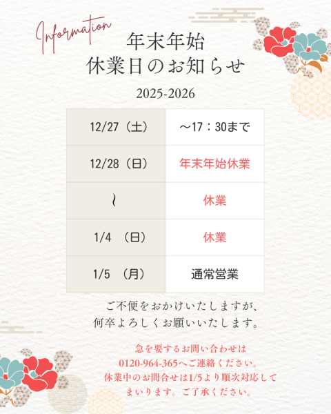 その他のお問合せは、1/5より順次対応して参りますので、お時間をいただけますよう合わせてお願い申し上げます。