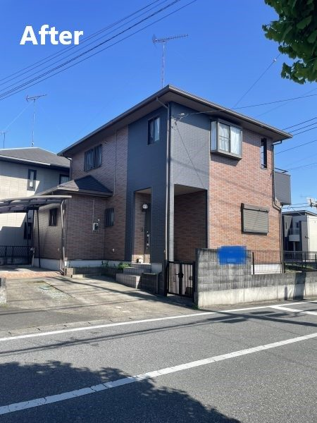工期は約1ヶ月、足場設置を含めた総費用は約200万円でした。施工後は街並みの中でもシックで目を引く美しい外観となり、住宅の資産価値向上にもつながったといえます。