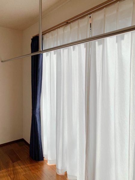 ここに取り込んだお洗濯物をかけておけるので便利です。お部屋でゆっくりお洗濯物をたたむことができます。